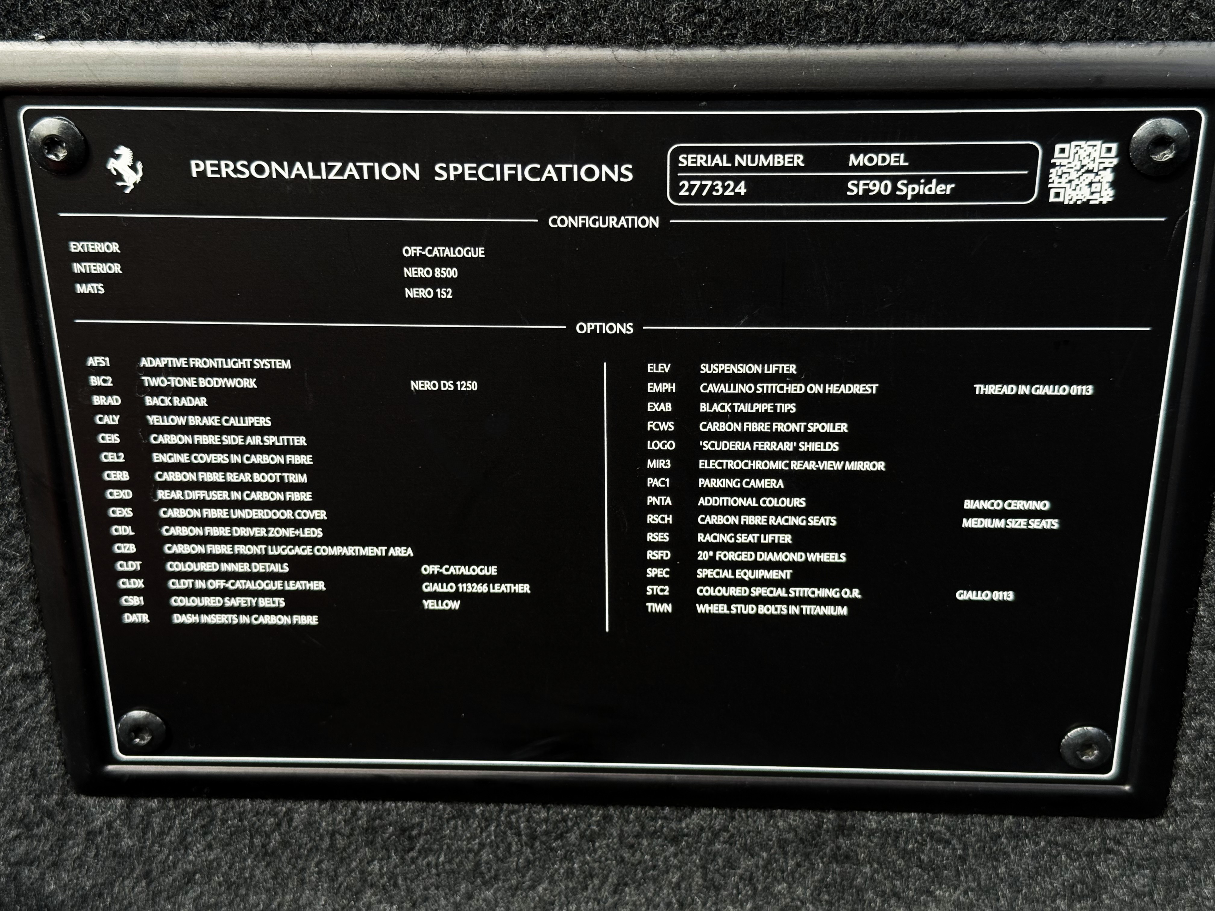 STEKダイノプリズムプロテクションフィルム アダプティプフロントライトシステム ツートーンペイント バックレーダー イエローブレーキキャリパー カーボンファイバーサイドエアスプリッター カーボンエンジンカバー カーボンリアブートトリム カーボンリアディフューザー カーボンアンダードアカバー カーボンドライバーゾーン+LEDステアリング カーボンフロントラゲッジコンパートメントエリア 特別色インテリア:ジアッロ113266 イエローシートベルト カーボンダッシュインサート サスペンションリフター ヘッドレスト跳馬刺繍 ブラックテールパイプ カーボンフロントスポイラー スクーデリアフェラーリシールド 特別色ビアンコチェルビーノ カーボンレーシングシート:ミディアムサイズ レーシングシートリフター 20インチ鍛造ダイヤモンドカットホイール スペシャルステッチ:グリジオ チタンホイールボルト